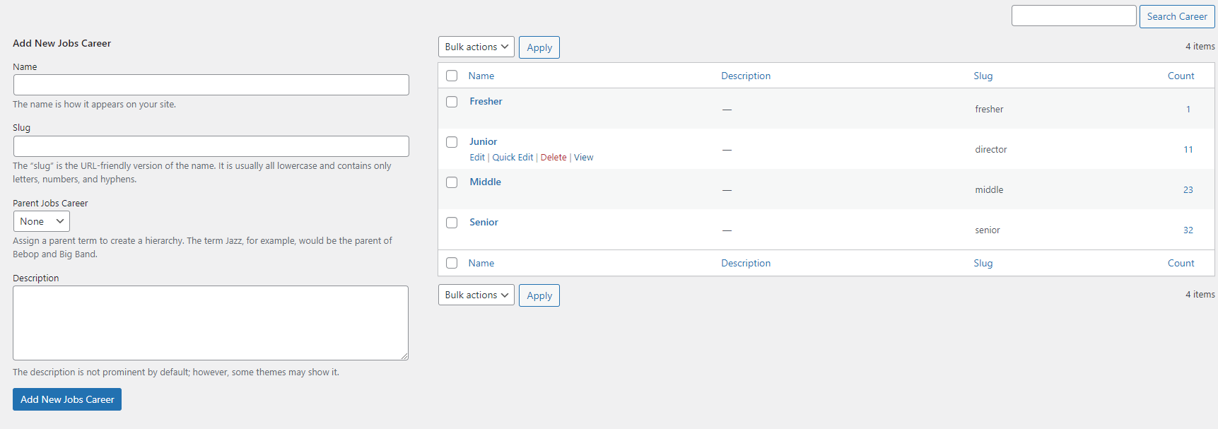 After completing all the necessary fields, click on the "Add New Jobs Career" button.