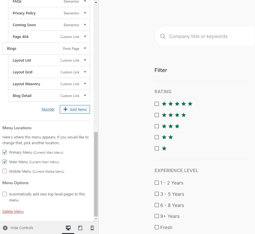 Settings of this group are responsible for managing Menus. Each menu location is available for filling with any of the predefined menu sets.