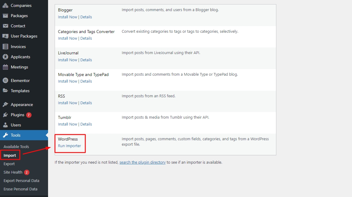Go to Admin Dashboard -> Tools -> Import -> Run import