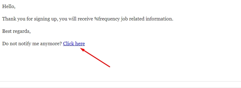 To turn it off, the way to do it is very simple. In the email content of the job alert, there will be a link at the end of the content. You just need to select "Click here" and it will cancel the job alert for you